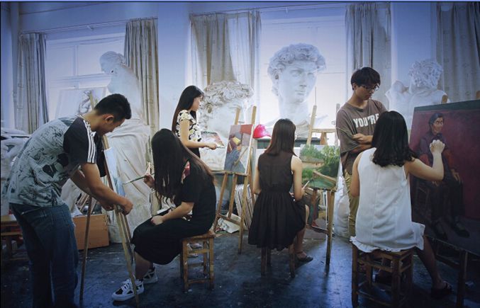 图为美术学专业学生在进行油画创作,图片来自“图说专业”