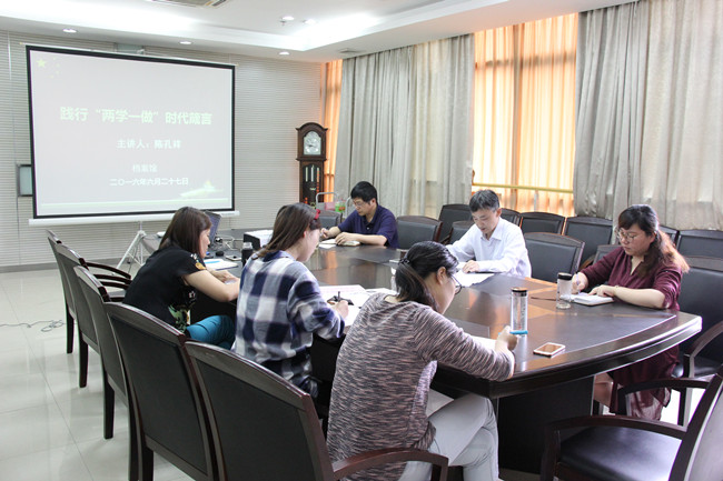 深入学习习近平总书记“七一”重要讲话精神。7月4日下午,档案馆党支部全体成员集中学习了习近平总书记“七一”重要讲话精神,并观看了《红色气质》微电影。陈孔祥在“七一”讲话精神学习导读中强调,“不忘初心,继续前进”贯穿讲话始终,内容丰富凝练。微电影《红色气质》用9分零5秒的时间精炼地回顾了中国共产党走过的历程,跨越时空,还原历史面貌,诠释“红色情怀”,切合“不忘初心”的内涵。