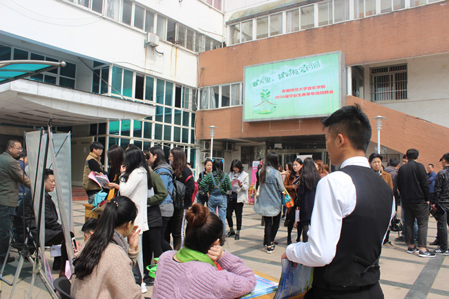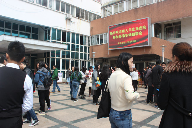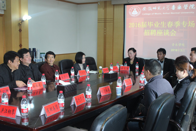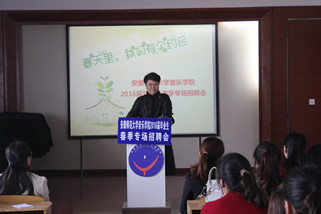 本网讯(音乐学院 曹栋)3月21日,音乐学院举办了2016届毕业生春季专场招聘会,学院邀请了安徽美育商务咨询有限公司,上海晓雯音乐培训学校,安徽辛迪钢琴培训有限公司,浙江金华明月松泉音乐文化传播有限公司,福建泉州金石文化传播有限公司等十几家用人单位来学院参加了此次专场招聘会,学院2016届154名本科应届毕业生参加了招聘会。