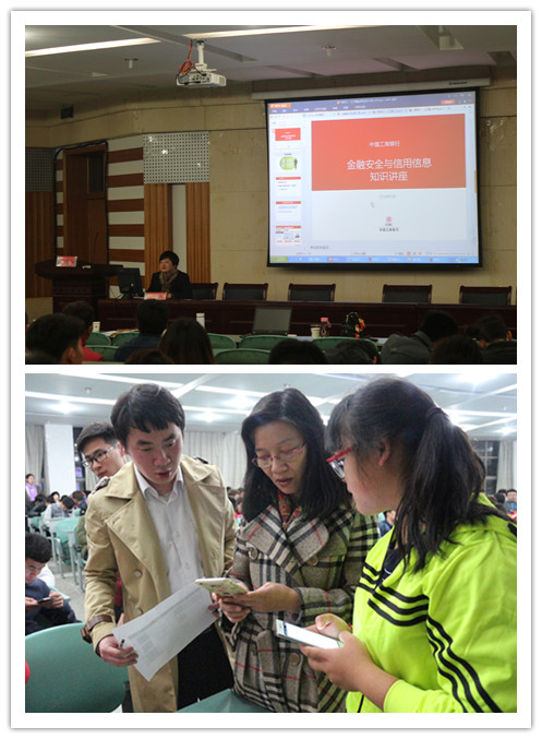 讲座中,司琼从金融安全、工银融e联、个人诚信知识三方面介绍讲解了我们身边的金融安全及常用的信用信息,现场指导大家如何安全使用电子通讯设备等,同学们反响热烈,对金融的安全性和信用的重要性有了更进一步认识。