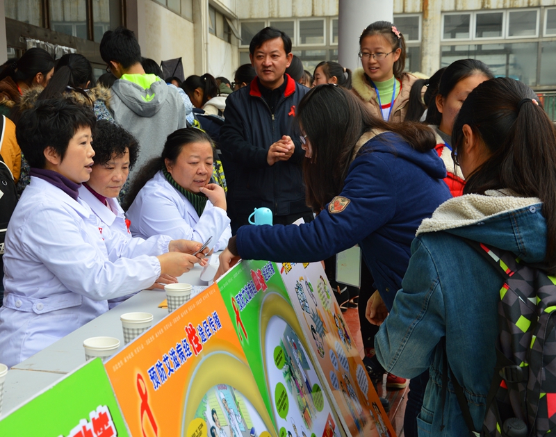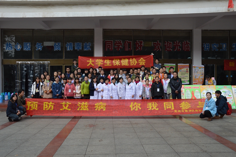 第28个世界艾滋病日来临之际,生科院、校医院、大学生保健协会、芜湖市疾控中心、镜湖区疾控中心联合开展了2015世界艾滋病宣传暨“美好青春我做主” 行动起来向零艾滋迈进活动高潮。院党委副书记刘振杰、校医院副院长段萍、市疾控中心豆正东、镜湖区疾控中心齐少波,生科院辅导员和协会会员、同伴骨干参与了活动。