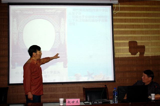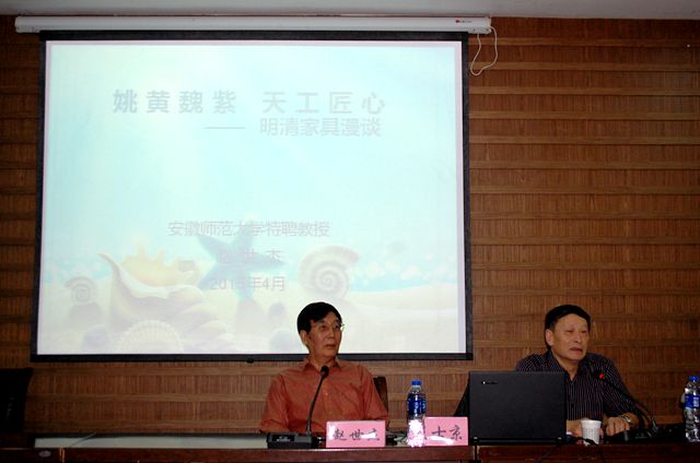 本网讯(院学生会 万娟 杨露露)蟠螭金凿五色毯,钿螺椅子象牙床。为进一步激发同学们对历史文化的兴趣,展示工艺家具的美感和历史意义。10月15日晚7点,历社学院在花津校区圆形报告厅一楼举办了以“姚黄魏紫,天工匠心”为主题的“明清家具漫谈”讲座。讲座由裘士京教授主持,中华珠宝学院院长、安徽师大特聘教授、著名收藏家赵世杰先生担任主讲人,2015级辅导员金捷带领历史系新生现场听讲学习。