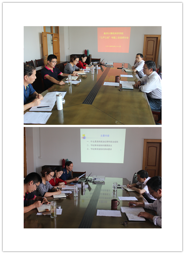 本网讯(数计学院 刘玉艳)9月28日下午,数计学院党委中心组在院四楼会议室围绕“严以律己,严守党的政治纪律和政治规矩,自觉做政治上的“明白人””开展专题学习研讨。会议由院党委书记陈树贤主持。
