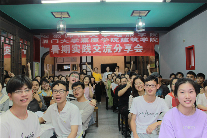 本网讯(地旅学院 潘爽 李丹 王阳)7月11日,我校地旅学院与厦门大学嘉庚学院于黄山地区开展暑期实习实践交流分享会,旨在促进两校学生相互学习、交流经验、共同提高专业水平。校团委兼职副书记王阳,地旅学院城乡规划专业教师黄秋实、张晨阳,美术学院绘画专业教师鲍涛,厦门大学嘉庚学院建筑专业教师黄妍、候思雨等,及我校2018级城乡规划专业、厦门大学2017级城乡规划专业全体学生参加了交流活动。