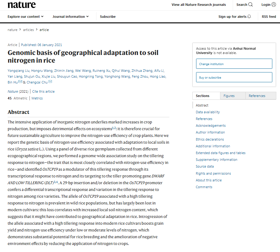 本网讯(生科院汪倩倩)2021年1月6号,Nature在线发表了86届校友、中国科学院遗传与发育生物学研究所储成才课题组题为“Genomic basis of geographical adaptation to soil nitrogen in rice”的研究论文,该研究揭示水稻OsTCP19等位基因的地理分布与土壤氮含量密切相关,OsTCP19在适应不同地理区域的当地土壤条件方面具有重要作用,对未来培育施氮肥少而又高产的“绿色超级稻”具有重大现实意义。