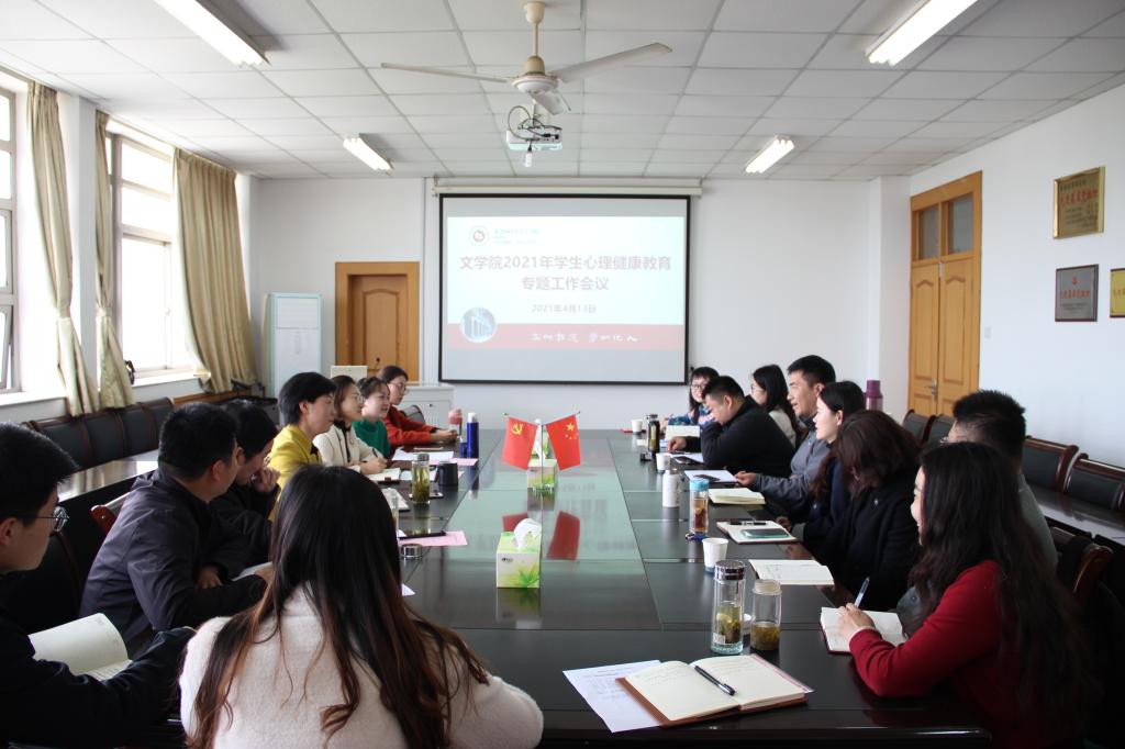 本网讯(文学院 孙霁雯)4月13日,文学院召开2021年学生心理健康教育专题研讨会,校学工部副部长宋静,心理健康教育中心专业技术人员、国家二级心理咨询师聂余受邀参加会议,文学院党委书记梁燕,党委副书记刘飞,副院长李伟,以及全体本科生、研究生专兼职辅导员参加会议。会议由刘飞主持。