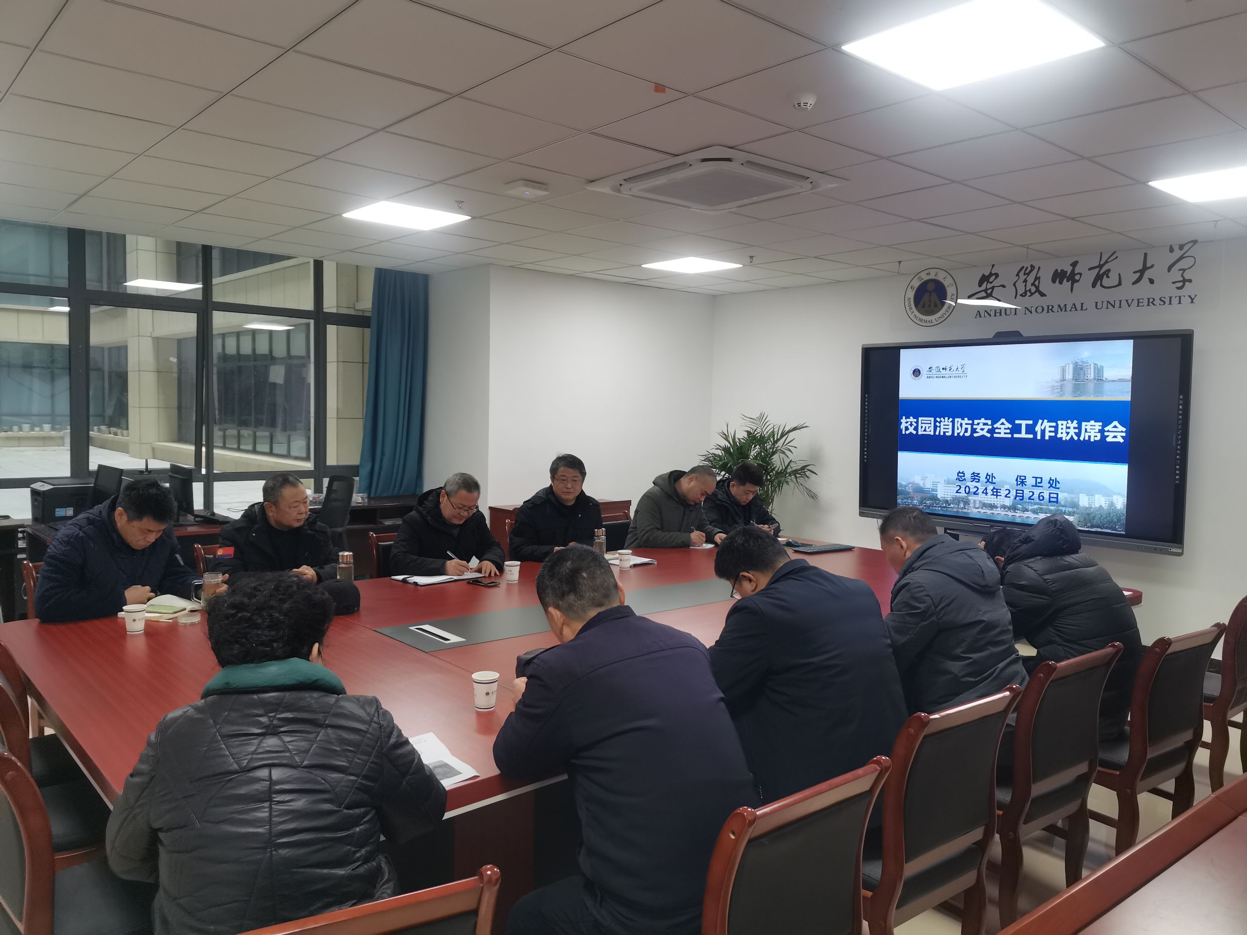2月26日上午,保卫处联合总务处在文典楼三楼会议室召开校园消防安全工作联席会。总务处副处长桂晓骏、保卫处相关科室、物业公司及安保公司负责人参加会议,会议由保卫处处长唐俊生主持。