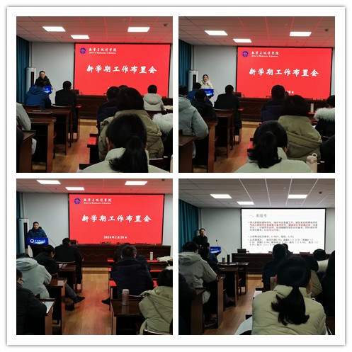 各班子成员结合学校“三大行动计划”对2024年重点工作进行了部署。汤敏从教学、科研、毕业生就业、项目申报、人事人才工作等方面进行工作部署,希望全体教职工做好学校“三大行动计划”的践行者,为校、院高质量发展贡献力量。院党委副书记芮先红从毕业生就业、学生安全教育管理、特殊学生帮扶等方面进行部署,切实护航学生健康成长。副院长徐林从教学任务的落实、常规教学管理、课堂教学质量、考试等方面进行了具体安排。