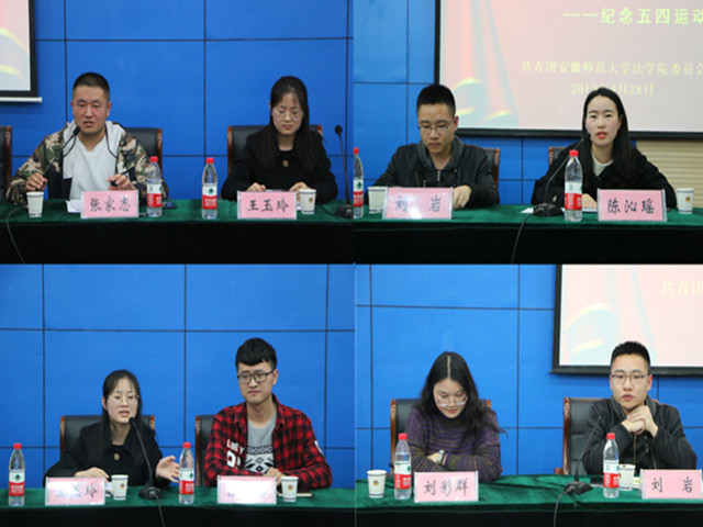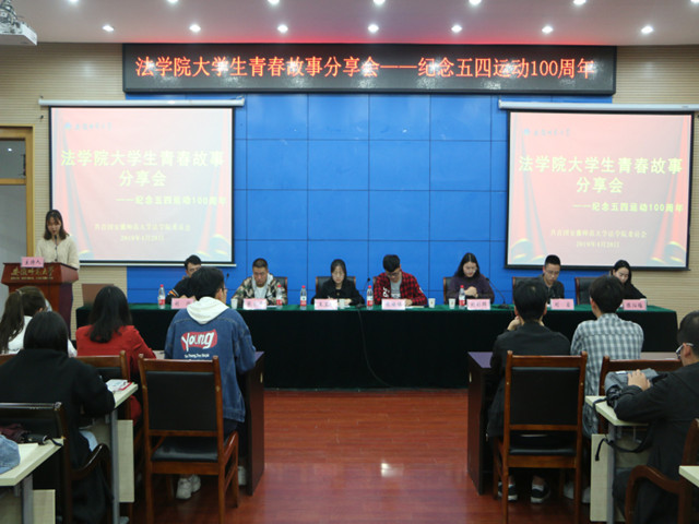 本网讯(法学院)正值“五四”运动100周年,为增强法苑学子对“五四”精神的理解,积极传承“五四”精神,4月28日晚,法学院于第三报告厅举办“五四青年”主题大学生青春故事分享会。此次分享会邀请了15卓越司法刘闯、张家志,15法学王玉玲、张楠楠,16法学刘岩、刘彩群、陈沁瑶七位同学分享他们的青春故事。院团委书记王虹圆出席会议,法学院2018级全体成员及部分团学骨干到场聆听,分享会由院团委副书记兼学生会主席张沥丹主持。