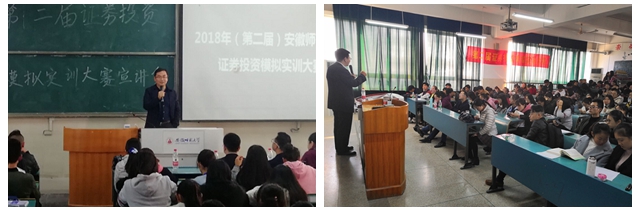 近年来,随着金融业的发展,社会对于金融人才的需求大大增强,为了做好经管学院人才培养工作,提升在校大学生的实践能力和综合素质,增强大学生利用金融工具进行投资和风险规避的能力,经管学院将继续秉承“立足安徽现实,传承徽商精神;培训一流人才,服务江淮大地”的使命,以学科竞赛、专业竞赛为抓手,以赛促学、以学促用,积极主动发挥育人新成效,开创育人新局面。