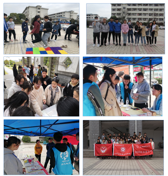 活动当天上午,社工现场秀活动在花津校区二食堂广场正式拉开帷幕,芜湖市社会工作(者)协会、益群社会工作服务中心等八家社会工作机构共同参与此活动。本次活动包括发放社会工作宣传手册、社会工作机构LOGO拼图问答、社会工作游戏现场体验、你画我猜和集体签名墙五个部分。活动组织方为参与活动的同学准备了玫瑰花和其他小礼物。