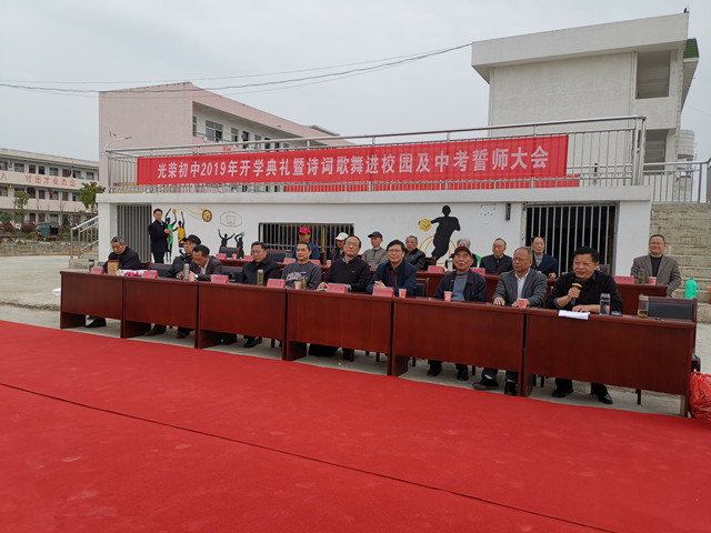 本网讯(文/桂晓骏 图/付勇)3月19日,我校在宿松县光荣中学设立的“大拇指”奖学金再次颁发。宿松县教育局党委副书记、副局长李文斌,安徽师范大学附属复兴中学校长程六三,驻三德村扶贫工作队队长黄德春、副队长桂晓骏、扶贫专干付勇及光荣中学全体师生、部分历任校领导、家长代表等800余人参加了颁发仪式。