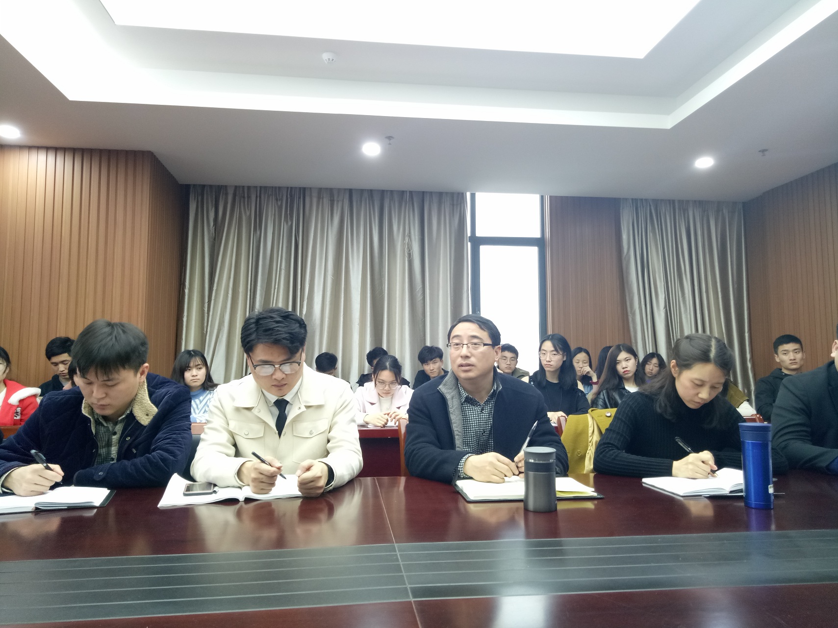 活动开始,各本科生学生党支部书记依次介绍了本支部学生党员对接低年级学业困难同学的帮扶工作开展情况,各支部均认真落实院党委工作要求,引导党员同学积极帮助低年级同学解决生活与学习中的困难。随后,院团委书记王国良向与会党员同学介绍了化材学院学生党员要切身做到的“十带头”,要求学生党员要带头发挥先锋模范作用,遵守校规校纪。余研霞副书记就安全用电、大学生言行举止、寝室卫生、融洽寝室关系、遵守课堂秩序等方面对学生党员提出进一步具体的要求和希望。