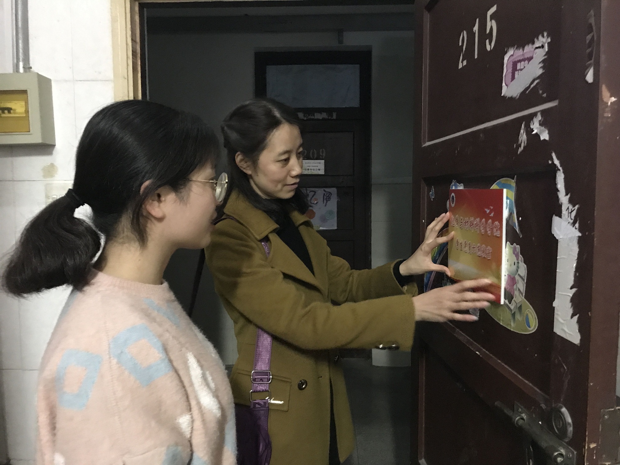 会后,院党委副书记余妍霞、各学生党支部书记及全体专兼职辅导员一同深入学生宿舍,为全体非毕业班党员寝室进行了“挂牌”,将“党员示范宿舍”和“党员示范床铺”标识牌粘贴在显著位置,激发学生党员争先创优的进取精神,扎实推进学生党建进宿舍工作。