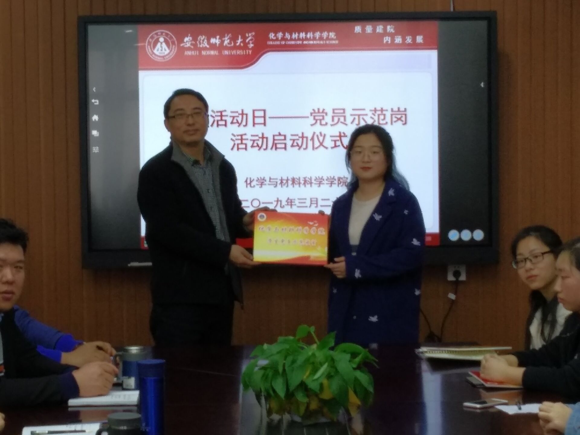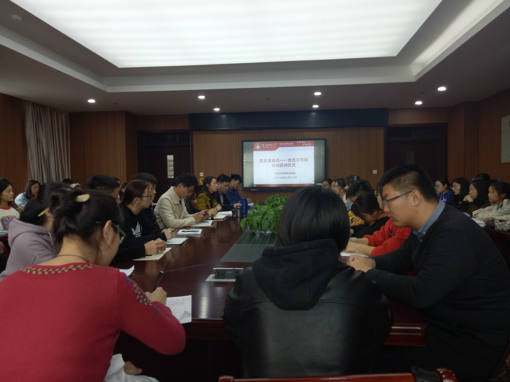 本网讯 (化材学院 陶勇)为提高全体学生党员党性修养,进一步发挥学生党员的先锋作用以及做好学生文明宿舍创建工作,3月20日下午,化材学院于702会议室举行了党员活动日——党员示范岗活动启动仪式。此次活动由学院党委副书记余妍霞主持,院党委书记汪俊武、各本科生学生党支部书记及学生党员共同参与了此次活动。