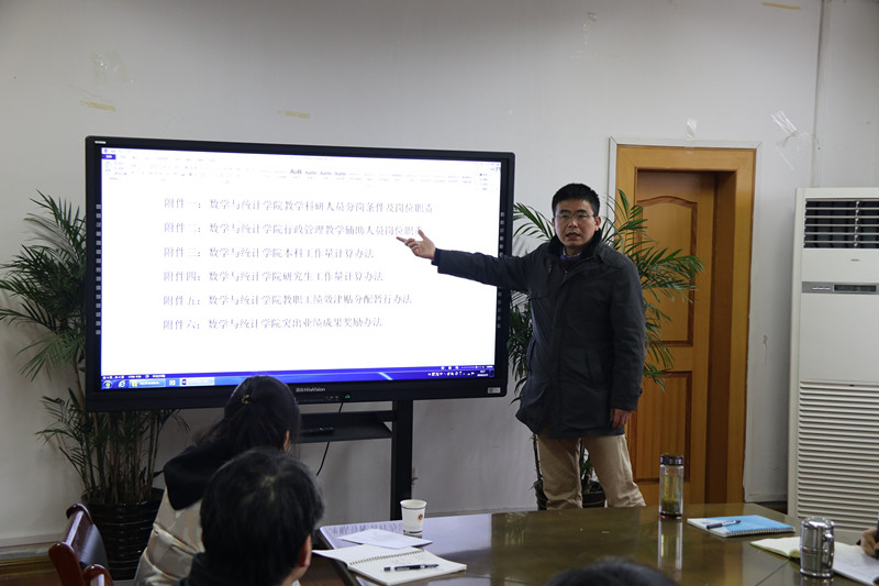 论职责,激发工作热情。学院教执委和绩效工资改革工作组围绕 “一总六分”的数统学院绩效工资改革方案(讨论稿)进行了充分的研讨,达成初步意见后提交全体教职工讨论。绩效工资改革及岗位职责的充分讨论,展现了学院民主治院的良好传统,也激发了教职工立足岗位,积极奉献的工作热情。