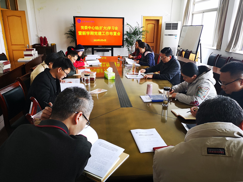 抓党建,明晰工作重点。学院召开党委中心组(扩大)会。学院党委委员、全体支部书记参加。会上,院党委书记陈树贤详细解读学院2019年党建工作重点并交流“学习强国”等学习经验。