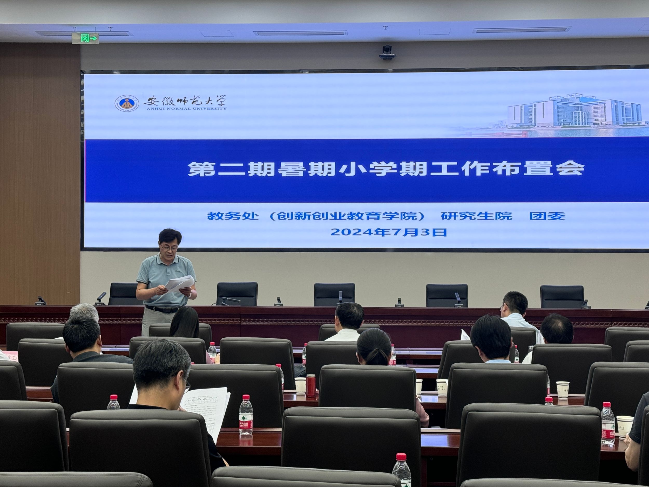 为深入贯彻“基础教育振兴行动计划”,确保暑期小学期高效运行,7月3日下午,学校组织召开第二期暑期小学期工作布置会。相关职能部门负责同志,各学院教学副院长及有关人员参加会议。校党委常委、副校长任永主持会议并讲话。