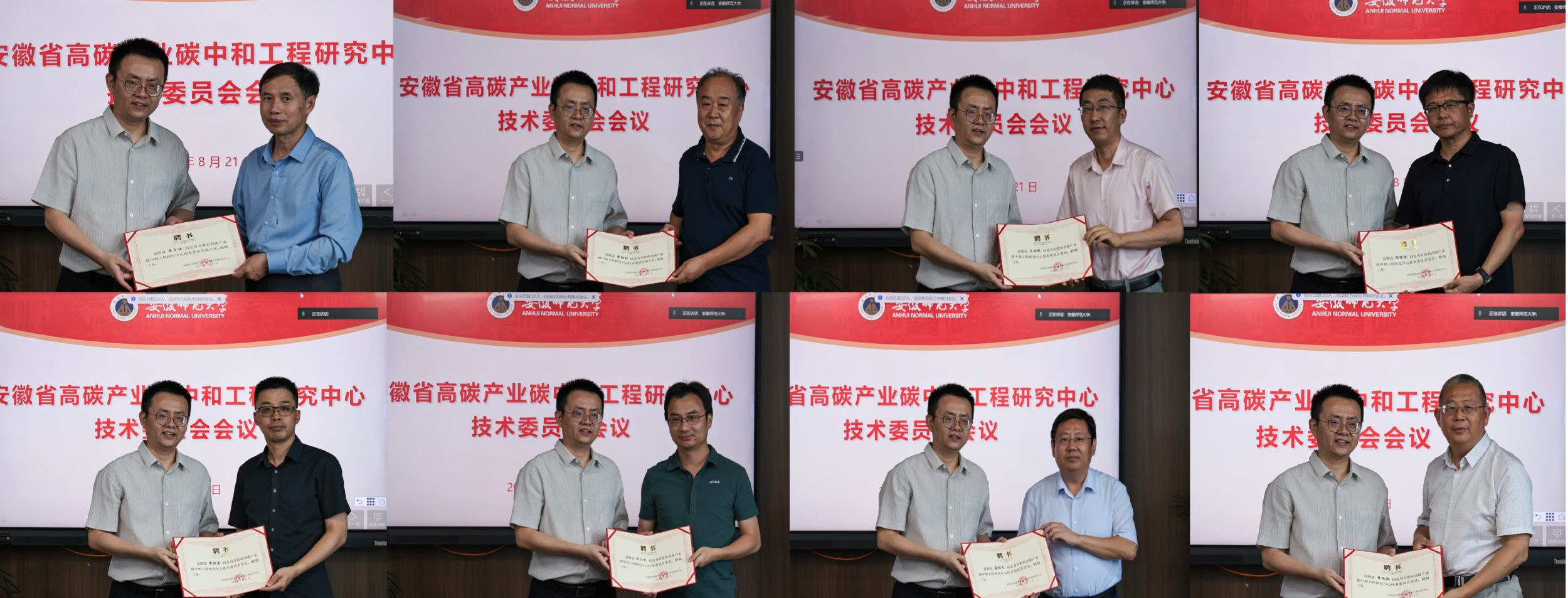 熊宇杰教授代表学校感谢各位专家百忙之中莅临学校指导,诚恳希望各位专家对学校基础学科建设提出宝贵意见,并为第一届安徽省高碳产业碳中和工程研究中心技术委员会委员颁发聘书。