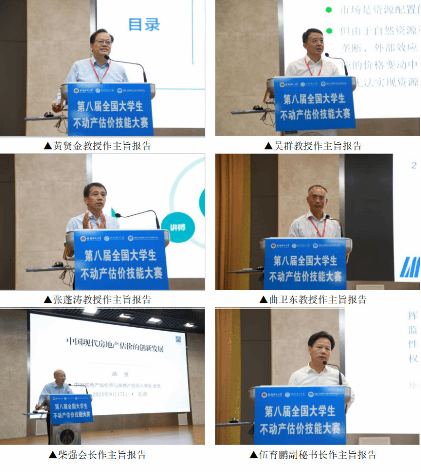 为什么土地需要估价?自然资源资产如何估价?如何做一名优秀的估价师?在主旨报告环节,来自研究院、高校以及估价行业专家学者围绕“面向高质量发展的不动产估价”主题传经送宝。在现场,学界、业界大咖思维迸发,激荡出不动产估价行业高质量发展“金点子”。安徽师范大学地理与旅游学院副院长曹卫东主持主旨报告环节。中国房地产估价师与房地产经纪人学会柴强会长以“房地产估价的创新发展”为题作主旨报告,他表示,创新是多方面的,并从概念、估价范畴、价值类型、估价原则、估价假设、估价方法、估价报告形式和内容等方面进行了详细讲解。南京大学黄贤金教授以“强农惠农富农与自然资源价值实现路径”为题作主旨报告,他表示,强惠富背景下自然资源价值的实现要破除选择性市场、破除命令式保护、破除救济式补偿。南京农业大学不动产研究中心主任吴群教授从供需机制、价格机制、财税机制方面详细阐述了如何更好发挥自然资源资产要素市场机制作用。教育部公共管理类教学指导委员会委员、河北农业大学资源与环境科学学院院长张蓬涛教授以三阶三思三维度的教学目标为始,分享了不动产估价课程建设的思考和做法。中国人民大学房地产税评估研究中心主任曲卫东教授从不动产估价的价值基准、经典估价方法薄弱环节、多种估价方法评估结果差距、估价行业未来发展四个方面阐述了对估价中若干问题的反思和探索。中国土地估价师与土地登记代理人协会首席研究员、副秘书长伍育鹏细致分析了自然资源生态价值评估路线,理清了自然资源生态价值评估框架。