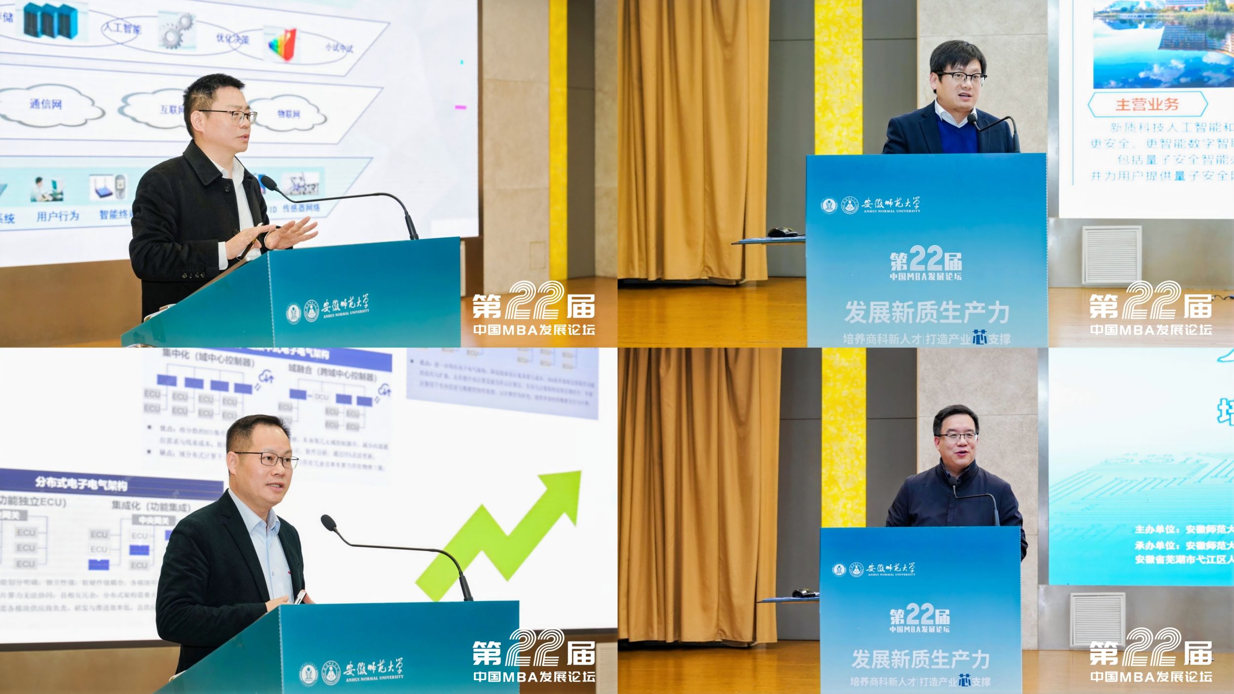 齐聚美丽江城,共襄商科盛会。2024年11月30日至12月1日,第二十二届中国MBA发展论坛在安徽师范大学花津校区举行。此次论坛以“发展新质生产力、培养商科新人才、打造产业‘芯’支撑”为主题,邀请国内外知名专家学者教授、商界精英及全国150余所MBA培养院校近六百名各界人士共同探讨如何推动MBA教育和新质生产力发展。本次论坛由安徽师范大学主办,校研究生院、经济管理学院、弋江区人民政府和长三角信息智能创新研究院承办,论坛历时两天,共设主论坛、分论坛、颁奖典礼、优质项目展示路演活动四个部分。