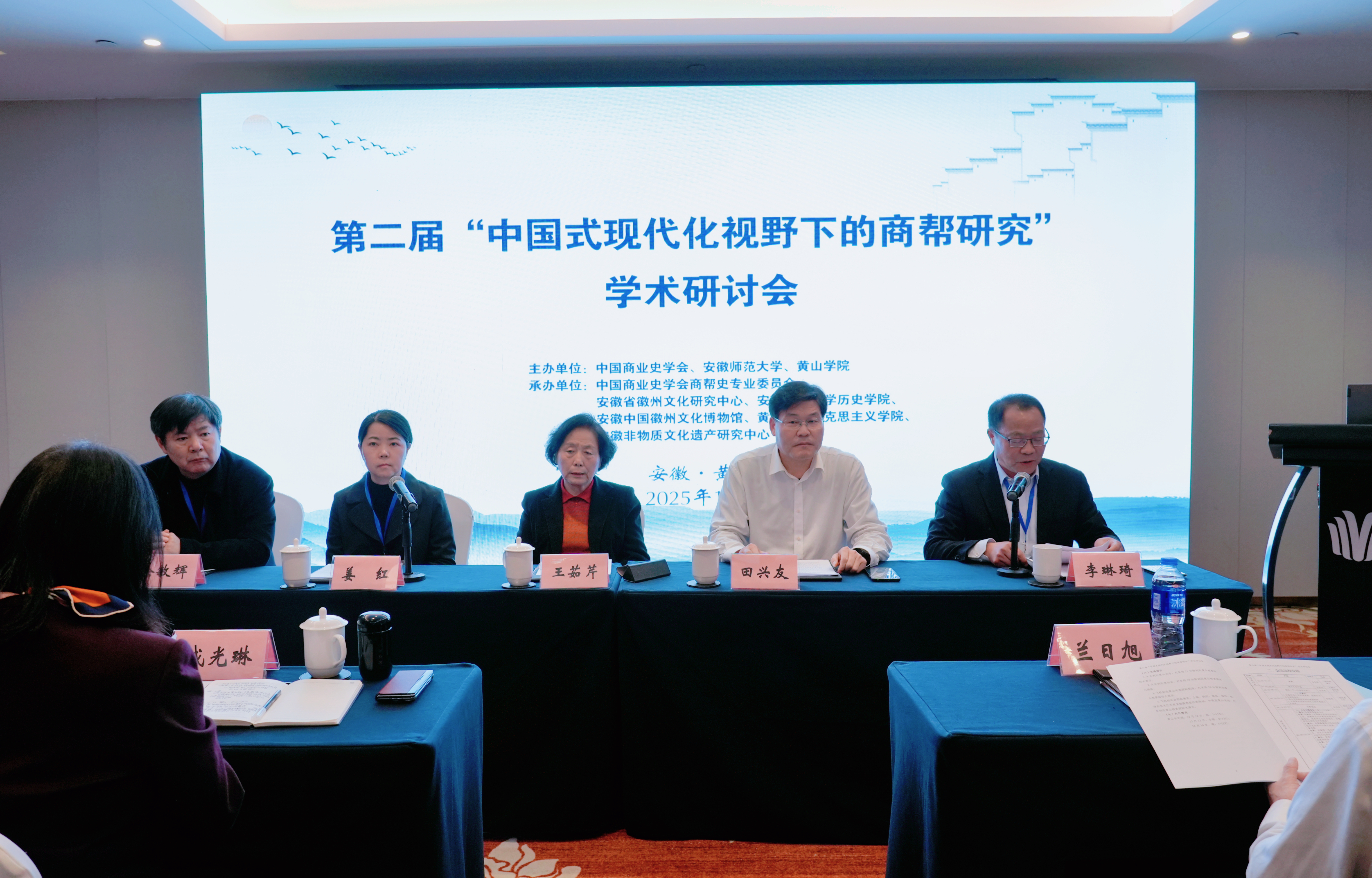 12月13-14日,由中国商业史学会、安徽师范大学、黄山学院主办,我校历史学院联合有关学院承办的第二届“中国式现代化视野下的商帮研究”学术研讨会在黄山召开。来自我校及中央财经大学、首都经济贸易大学、南开大学等近20余所高校和机构的50余位专家学者参会。校党委常委、副校长田兴友出席开幕式。